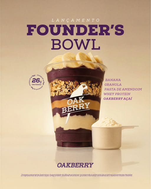 Criado pelo @georgiosfrangulis pra você! 💜🧿 Um bowl exclusivo de OAKBERRY AÇAÍ com 26g de proteína*. Prove agora! Peça pelo aplicativo OAKBERRY. #RespectTheOAK #OAKBERRY #açaí #proteína #FoundersBowl *Imagem meramente ilustrativa. *A quantidade de 26g de proteínas corresponde à soma total de proteínas provenientes de todos os ingredientes do produto, considerando o tamanho Classic (350ml).